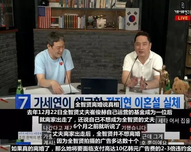 爆料的是当地一档网络节目《横竖研究所》,煽风点火。可惜这档节目名声一向不怎么好,捕风捉影缺乏实锤。全智贤的公司和好友们都替她说话,这个瓜于是没了下文。