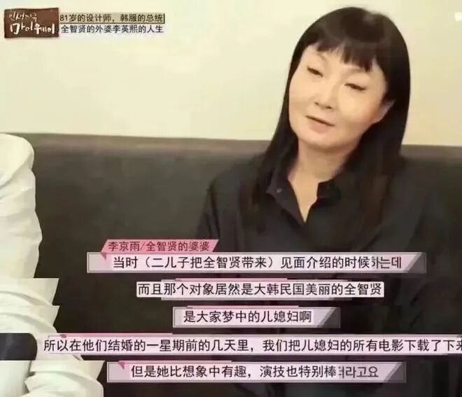 除了婆婆,还有外婆她老人家那一关呢。外婆李英熙生前曾当众说,希望全智贤多读点书。