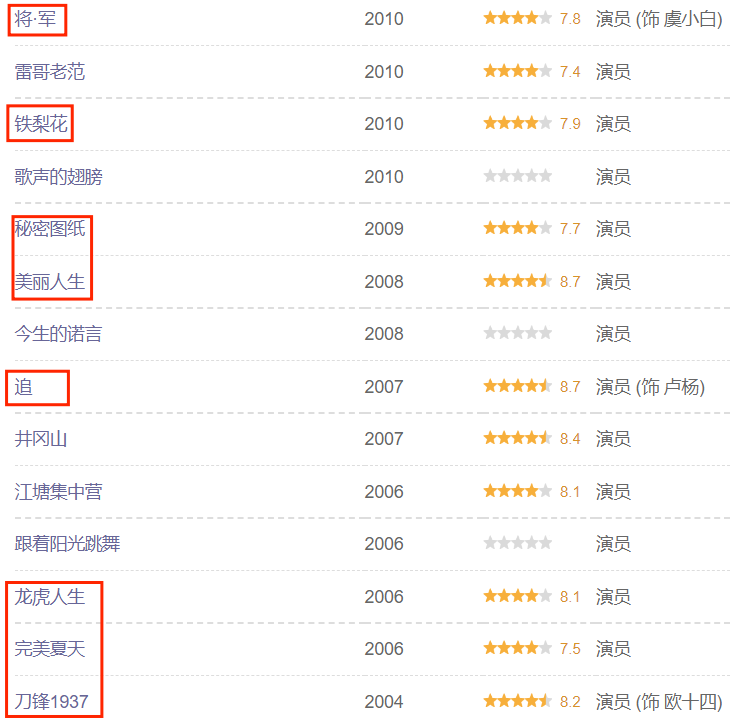 04年上映的《刀锋1937》、06年的《完美夏天》和《龙虎人生》、07年《追》、之后《美丽人生》、《秘密图纸》、《铁梨花》、《将·军》,6年8部剧,几乎在哥哥的片场安营扎寨了。