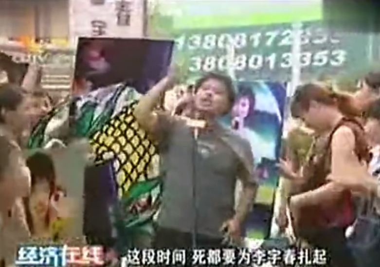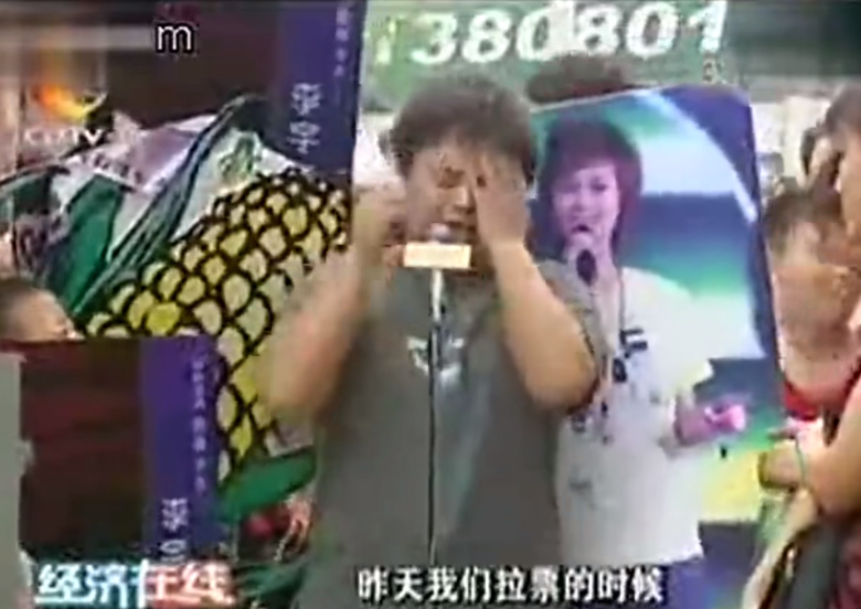 据说现场有将近五万玉米,她们都是从外地坐着绿皮火车赶来的,偶像的成神时刻,必须要见证。为了给李宇春拉票,她们顶着炎炎夏日,在街头呐喊助威。