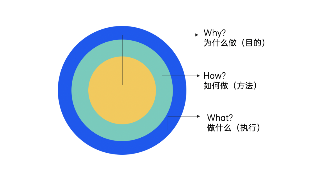 有个著名的“黄金圈法则”:由Why、How、What三个圈层来思考或决策。
